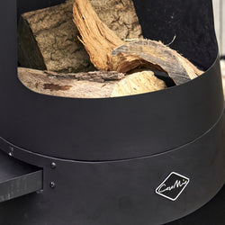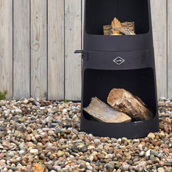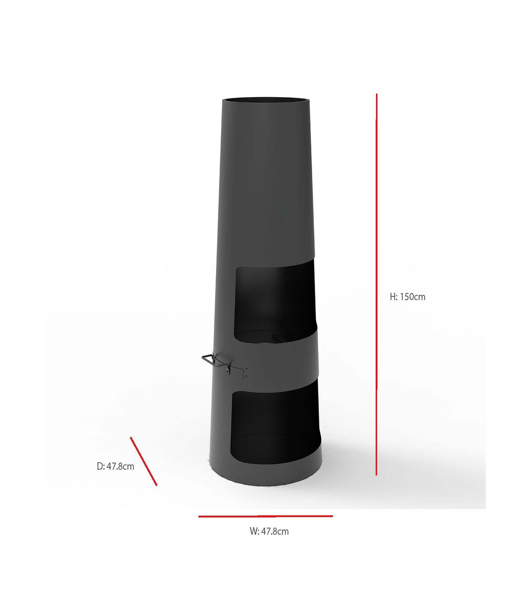 Designed to elevate your outdoor space with its striking matt black finish. Crafted to provide warmth well into the evening, the tall chimney efficiently directs smoke upwards, ensuring a comfortable atmosphere without eye irritation. Made from durable steel, its body effectively retains and disperses heat for enhanced warmth. Featuring a pull-out tray for easy ash disposal, it simplifies maintenance and also incorporates a wood storage area, ensuring convenient access to fuel.