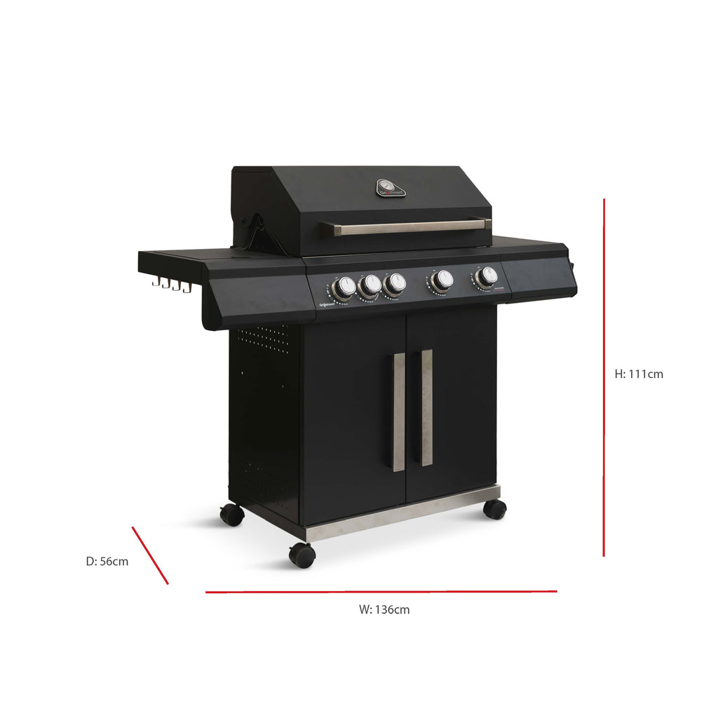 The Stealth 4 Burner Barbecue delivers a sleek, modern design with top-tier grilling features. Perfect for the serious griller, equipped with Grillstream and Hybrid technology, it offers both gas and charcoal grilling options. With three burners, a side burner, and a double-skinned hood for optimal heat control, it’s built to cook your meals to perfection. The storage cabinet keeps everything organised, while the removable fat cup makes for easy cleaning. Plus, with castor wheels for easy manoeuvrability and LED light-up controls, the Stealth 4 Burner ensures style, convenience, and performance for every BBQ session.